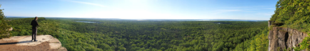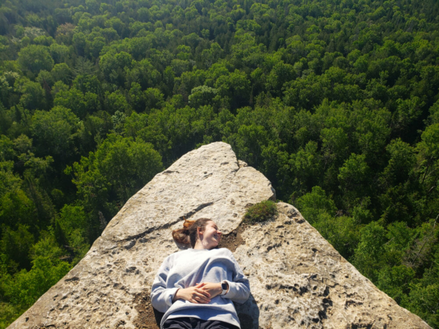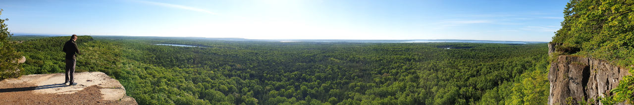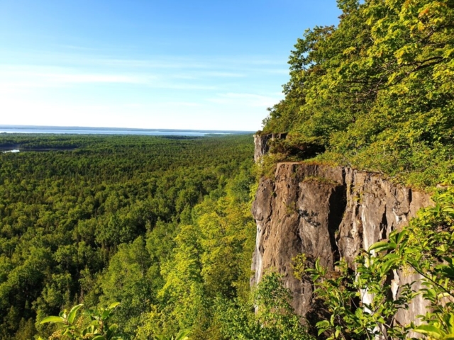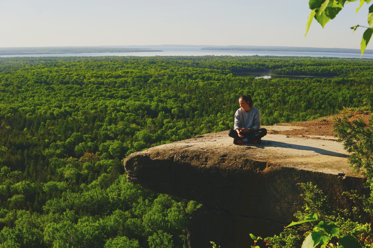 We slept at the parking of the Cup and Saucer trail, which is the most popular trail on Manitoulin Island. The next morning, we woke up early and took the trail up to a stone platform with a beautiful view over the island.